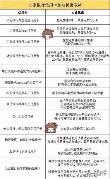于是,贝阙流量管家整理了10家银行有加油优惠的信用卡,方便有车的卡友省下更多油费。