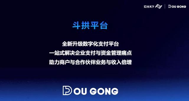 他谈到,“斗拱”平台重要有三大核心:一是作为一个全新升级的数字化支付平台,”斗拱“能实现非常简单的接入;二是能一站式解决企业的支付和资金管理痛点,能用一个“完备“的平台、完备的服务来支撑多元化的支付和复杂场景;三是助力商户与合作伙伴实现业务与收入的倍增。简言之,即为用户创造”简单、完备、增长“的优美体验。